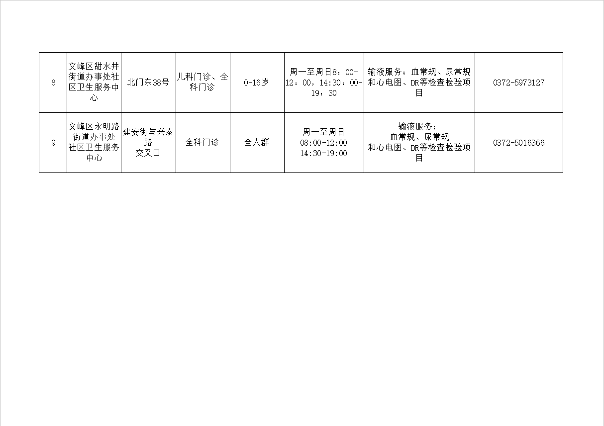安阳市文峰区提供儿科诊疗服务的基层医疗卫生机构名单