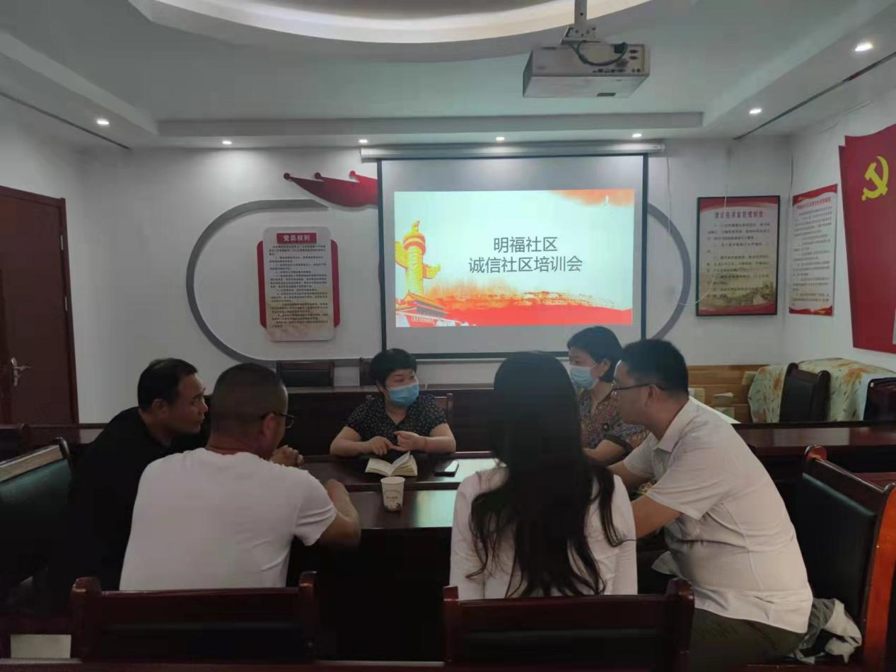 2022年6月23日下午5点,明福社区召集辖区单位在二楼会议室参加诚信社区创建配训活动,此次活动培训充分强调了企业应坚持诚信营商,贯彻契约精神、维护和谐商务关系和营造良好营商环境。时刻强化企业的守信意识、责任意识、以保证企业生产经营活动的合规合法性,并积极主动参与到社会信用体系建设中来。