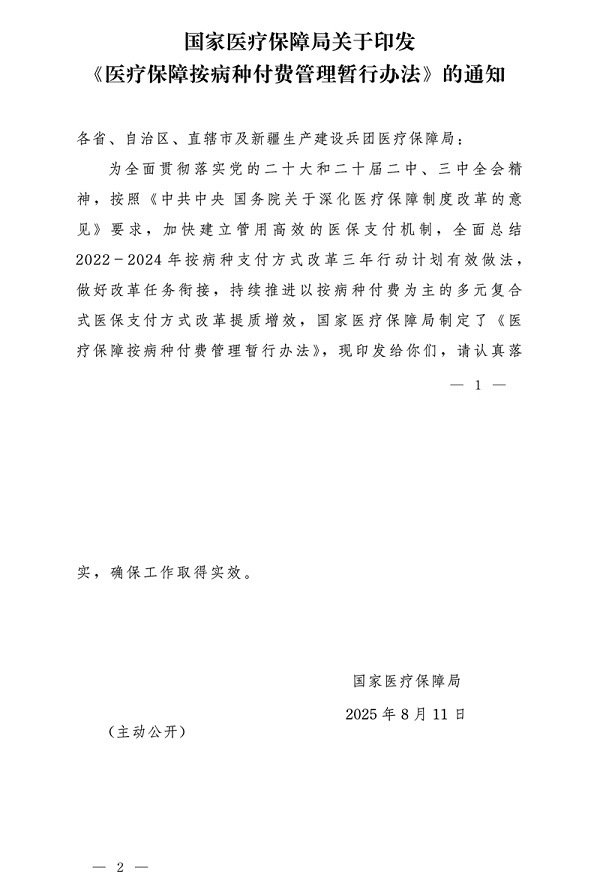 发布机构 国家医保局 成文日期 2025-08-11