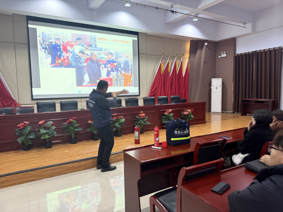 本次培训特别邀请消防学校教官现场授课,采用多元化模式,确保培训内容入脑入心。培训伊始,教官通过播放近期全国范围内典型火灾事故视频、展示现场图片等方式,直观呈现了电气故障、违规用火、电动自行车违规充电等常见隐患引发火灾的严重后果,深入剖析了事故背后的安全责任漏洞,让参训人员深刻体会到“隐患险于明火,防范胜于救灾”的深刻内涵。